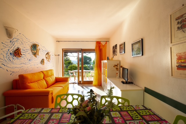 Appartamenti: dotati di arredi moderni e funzionali hanno ingresso indipendente, possono essere talvolta distribuiti internamente su due livelli, sono dotati di Tv, lavatrice, aria condizionata (a pagamento) e sono disposti a piano terra con giardino e patio privato o al primo piano con balcone sempre attrezzati con tavolo e sedie per consumare i pasti anche all’aperto.